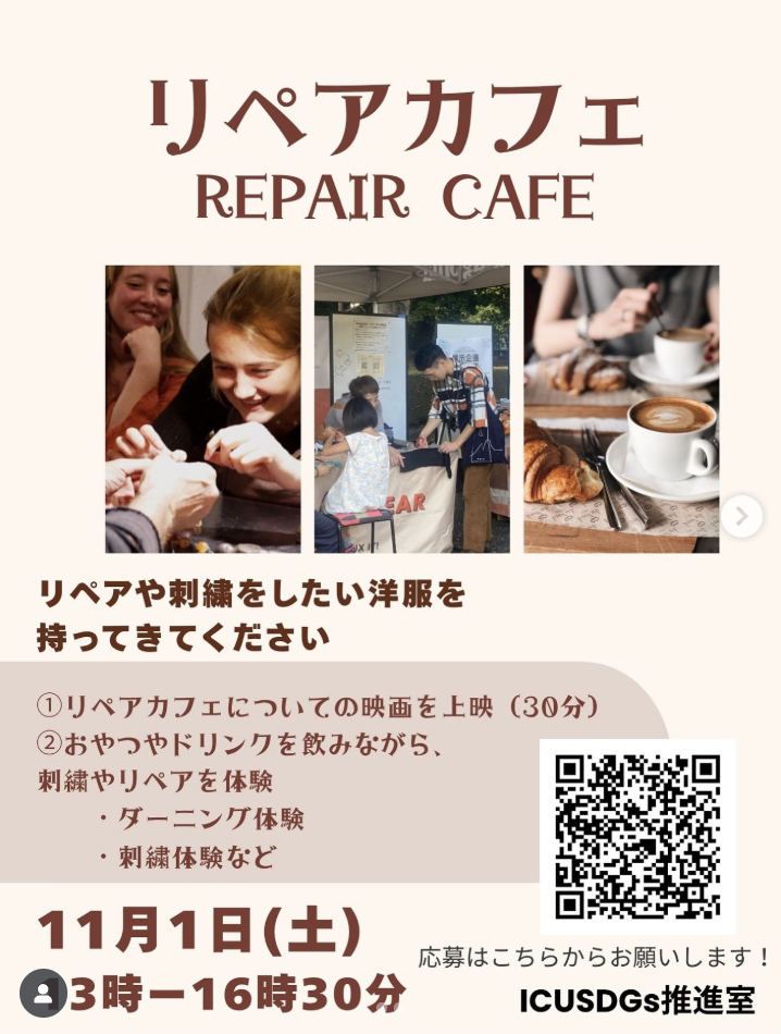 「服がめぐる、つながる、まちのループ」Community Loopsプロジェクトの一環として、国際基督教大学SDGs推進室と協働して国際基督教大学内で「リペアカフェ」を開催します。学生の皆さんと共にモノに愛着を持って使い続けることの価値を共有します。